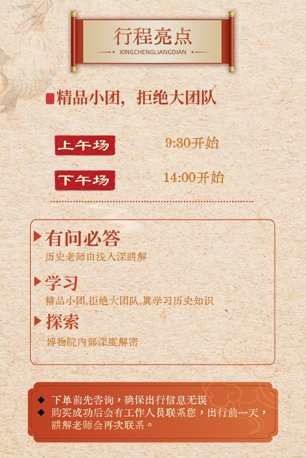 ●(博物馆每周一闭馆)此产品是按照人数需求下单,选择链接套餐下单即可,请您下单前咨询客服各个场次是否还有余位!下单后请告知客服姓名电话。
