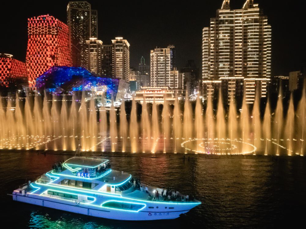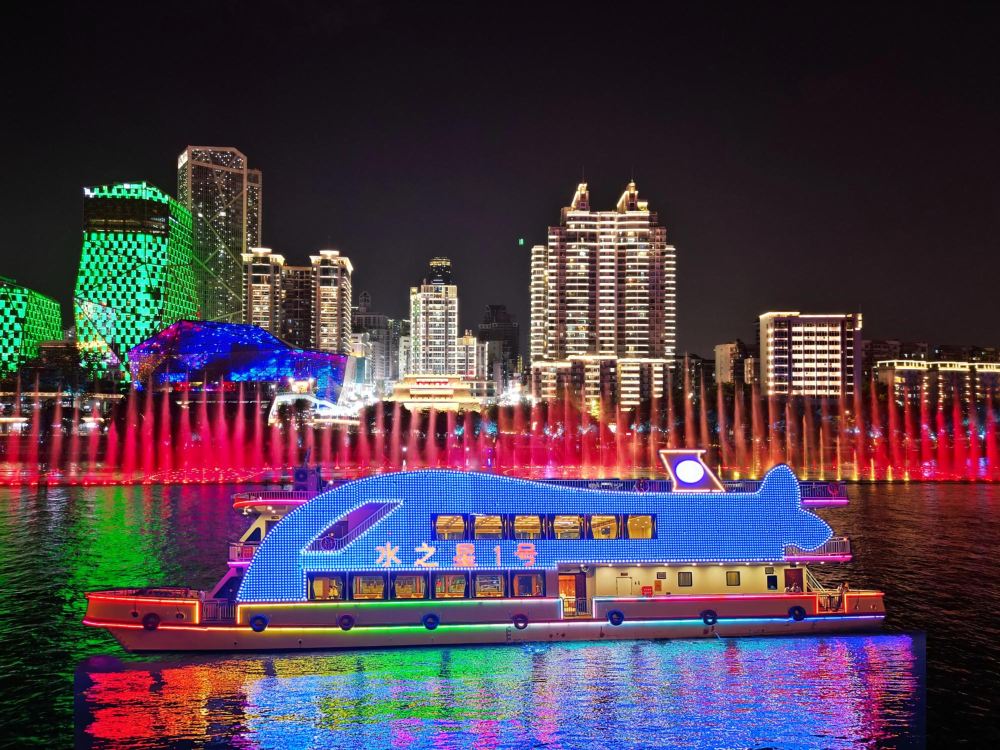 2、非凡1号游船的夜游船次时间:周日至周五开1班船,开船时间为20:00,航线:东堤码头—凤凰岭大桥—东堤码头—窑埠古镇—瀑布—喷泉—东堤码头,全航程约1.5小时,期间中途短停东堤码头一次(晚8点半左右);周六开2班船,第1班开船时间为晚上19:30,第二班开船时间为20:30,航线:东堤码头—窑埠古镇—蟠瀑布—文庙—喷泉—东堤码头;凡遇包船当天游船开2班。由于游船受核载人数、包船、天气状况等特殊情况影响,购票时请提前致电确认乘坐事宜。如航班时间、路线另有调整,请以当天确认趟次为准。