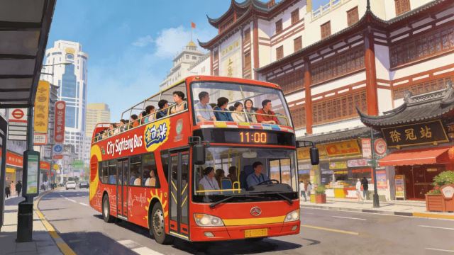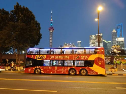 下午6:15至7:00,乘坐双层城市观光巴士进行45分钟的城市游览,途经外滩和豫园等标志性地标。