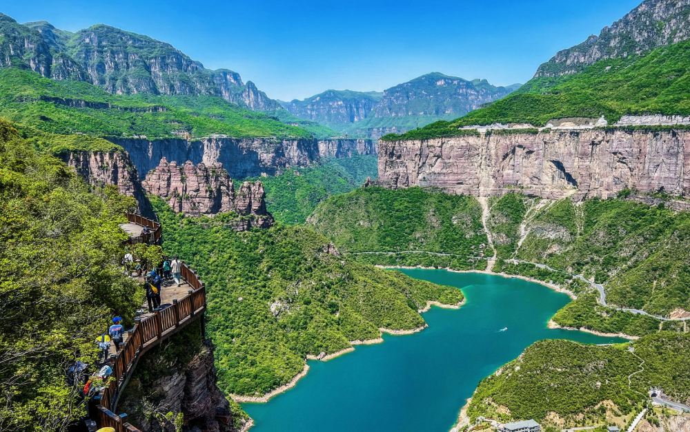 河南宝泉旅游度假区位于河南省新乡辉县市境内,景区属于典型的峡谷生态观光景区,总面积110平方公里,平均海拔1150米,森林覆盖率达98%,是国家森林保护区、重点生态公益林和太行猕猴保护区。年平均气温18℃左右,气候宜人,空气清新。宝泉景区地处太行山重要节点,大峡谷、大绝壁、大山水交相辉映:游龙峡谷红岩绝壁、沟壑纵横,宝泉湖水碧波荡漾、一望无际;景区特有嶂石岩陡崖断层地貌形成了太行山密集、壮观的瀑布群:双龙瀑、见龙瀑、玉女瀑、飞龙瀑、青苔瀑,五步一潭,十步一瀑,形态各异的瀑布组成的中华千瀑谷堪称太行奇观,被誉为“中原瀑布群”。宝泉大峡谷荣登《中国国家地理》 2017年11期的封面,受到旅游界、地质学界的广泛关注 。