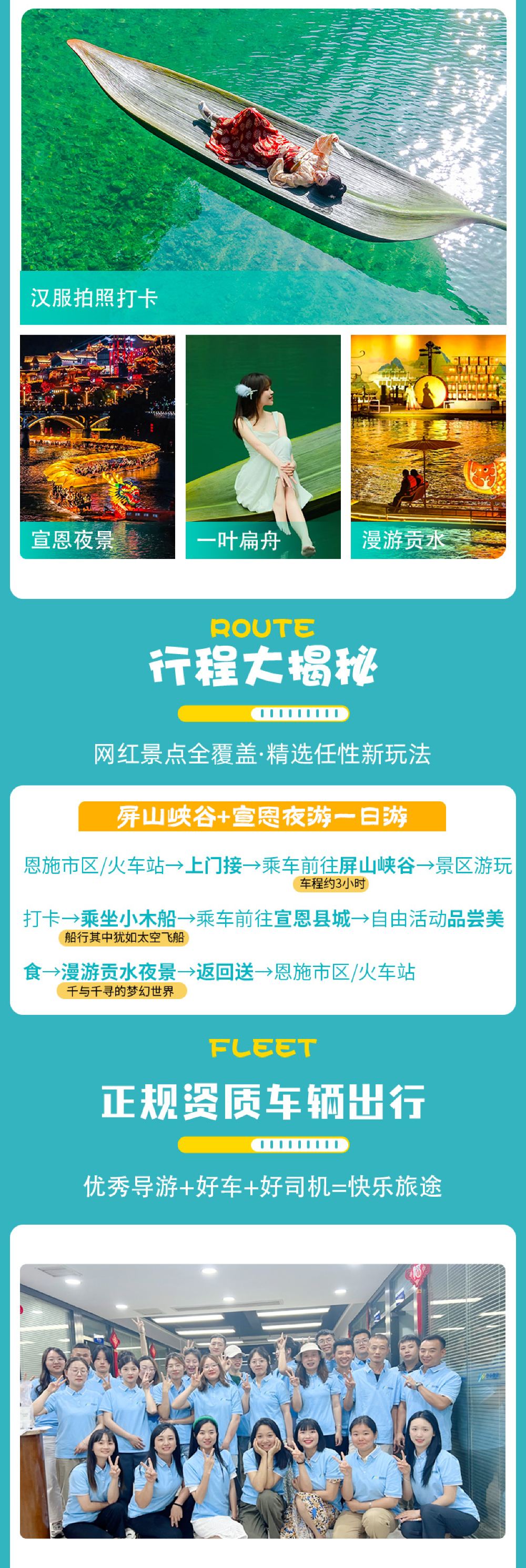 本产品为全程跟团游,所有游客须于恩施市区指定地点统一集合乘车