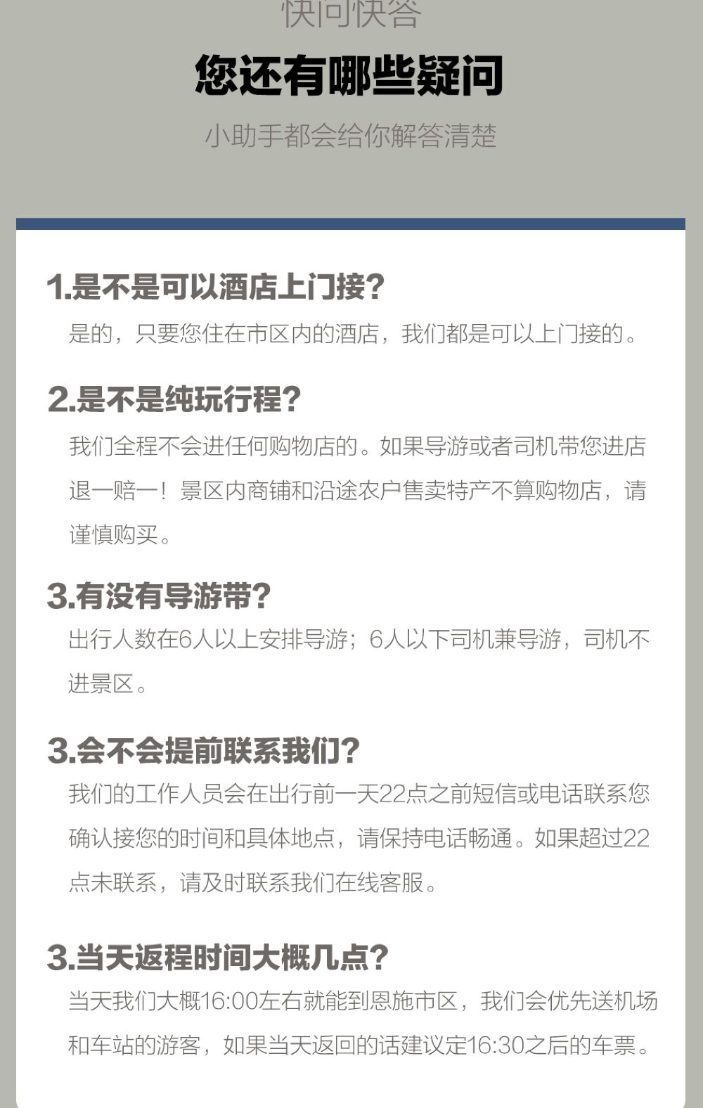【接送范围】恩施市区范围内酒店/车站,可咨询客服酒店是否在接送范围。