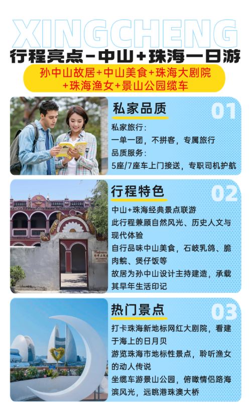 私家小团上门接送|孙中山故居+珠海热门景点+景山公园缆车一日【私家旅行:上门接送,一单一团,不拼客,专属旅行; 品质服务:5座/7座车上门接送,专职司机护航】