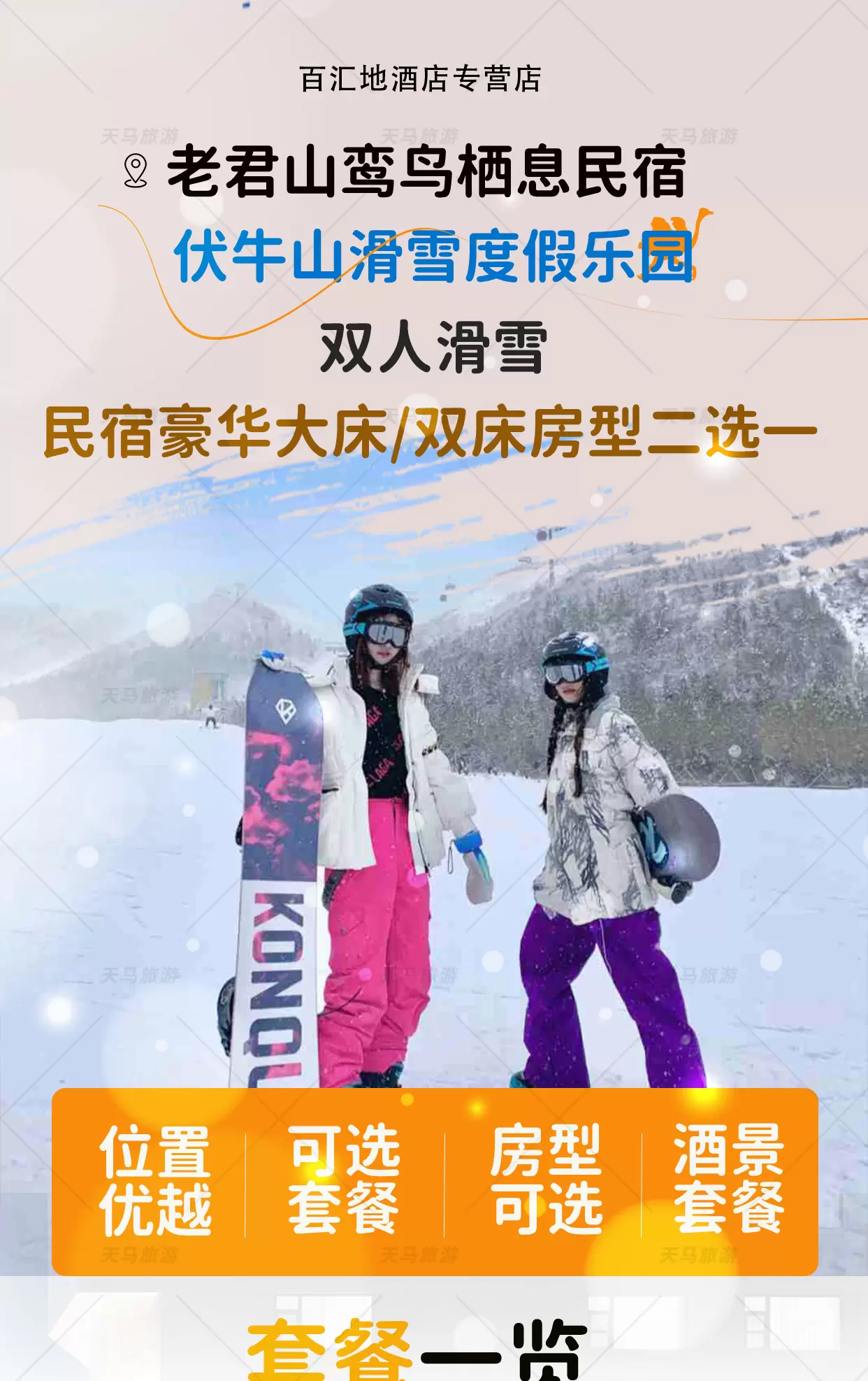 【酒景套餐】洛阳伏牛山滑雪门票+1晚美途民宿+双人套餐(含雪具雪杖雪鞋)