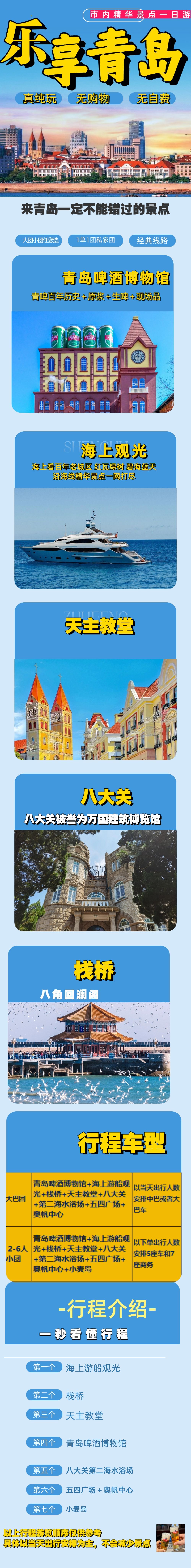 C套餐366元行程安排是:栈桥+船游醉美青岛湾(含船票)+天主教堂+八大关+第二海水浴场+五四广场+奥帆中心+小麦岛+极地单管