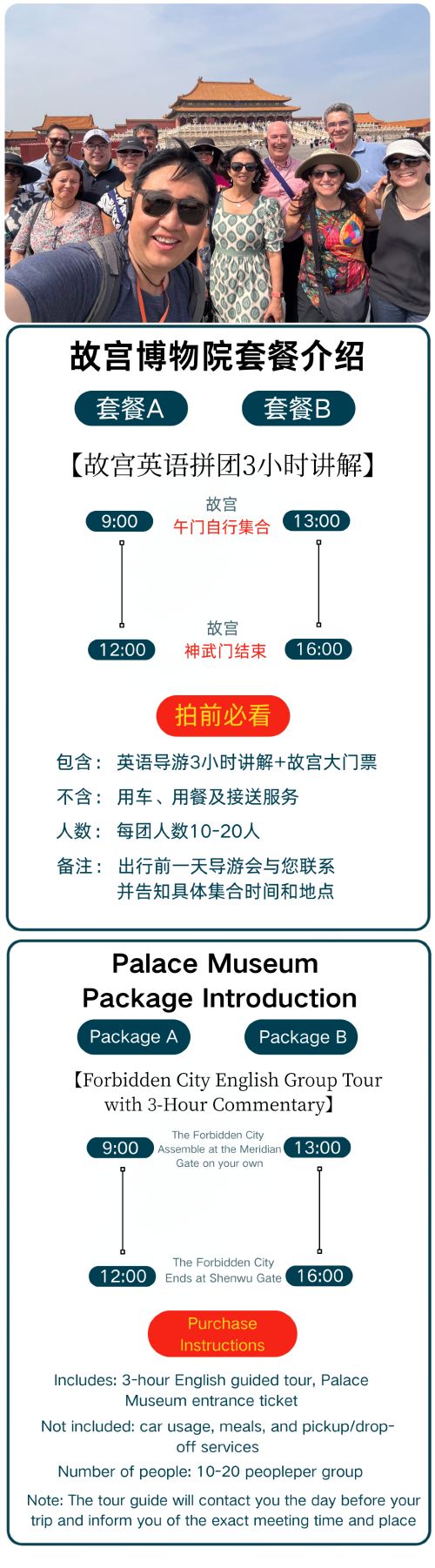 北京英语、珍宝馆讲解3H故宫含门票*英文导游深度讲解跟团游【全英语母语级老师,专业领域学者背景,提供深度的历史与文化诠释】
