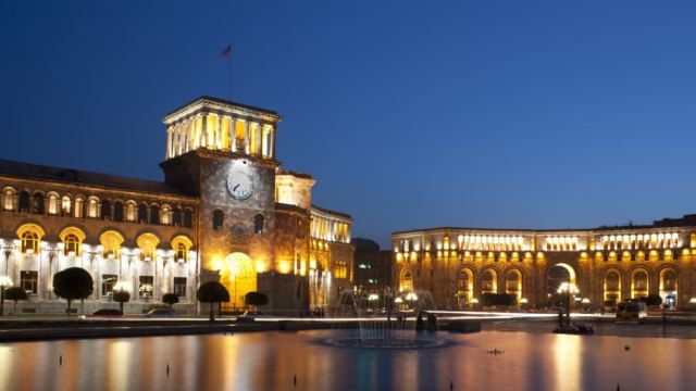 ▲ 共和国广场:埃里温的核心地标,这里不仅是城市景观的精华,还能深度体验当地文化、历史与生活气息。 1、 建筑欣赏:广场周边的建筑是亮点,亚美尼亚国家博物馆、国家画廊、政府大楼等均由独特的粉红色火山岩建造,搭配白色装饰,在阳光下色彩明快又充满历史感。 2、广场漫步与互动:广场中央有大型喷泉,天气好时会有喷水表演,当地人喜欢在这里散步、聊天、喂鸽子,氛围轻松惬意。 3、 博物馆体验:国家博物馆,馆内有从远古到近现代的文物比如乌拉尔图时期的青铜器、中世纪手稿等,能直观了解亚美尼亚的文明脉络。