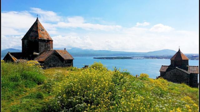 ▲ 塞凡纳旺克修道院位于亚美尼亚塞凡湖畔,由中世纪著名僧侣圣梅斯罗布于9世纪末创建,是亚美尼亚使徒教会的重要遗址。 其特点鲜明:建筑以当地黑曜石和火山岩为材料,两座主教堂呈十字形,外墙雕刻简洁古朴,顶部有标志性的圆锥形穹顶。修道院坐落在湖畔高地,教堂与湛蓝湖水、远处雪山相映,兼具宗教庄严与自然之美,曾是中世纪宗教与文化中心,现存建筑保留了亚美尼亚古典建筑精髓。