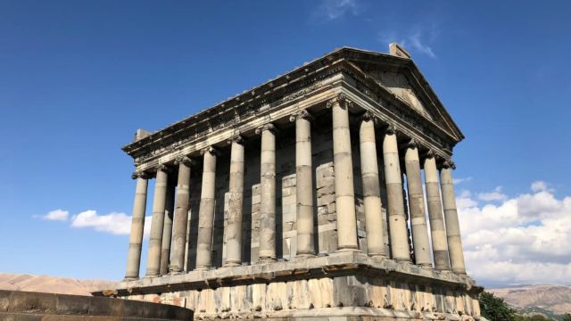 ▲ 加尼神庙:是亚美尼亚境内的希腊化神庙建筑,也是世界上靠东的完整希腊化神庙。它建于公元1世纪,历史悠久,建筑采用青色和黑色的玄武岩建造,由24根柱子支撑,设计受雅典巴特农神庙影响,具有极高的艺术和历史价值。