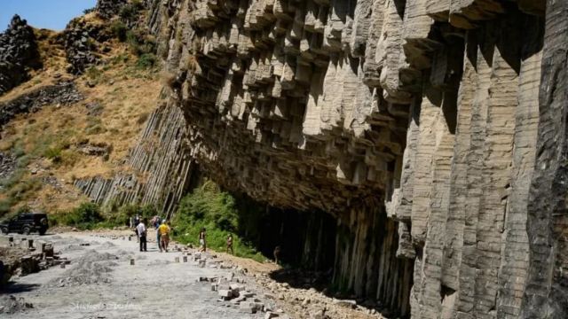 ▲ 石头交响曲”位于亚美尼亚加尼峡谷,是独特的地质奇观。 独特之处:由火山岩浆冷却收缩后经长期风化侵蚀形成,以巨大对称的玄武岩柱为特色,多为规整的五角与六角形,排列紧密,部分岩柱高达50米,这在内陆峡谷中极为罕见。 好看之处:众多笔直或因水蚀弯曲的玄武岩柱形似管风琴管子,如瀑布状冰冻玄武岩“风琴管”,在谷底形成“空中花园”般的视觉效果,壮观且震撼 。从谷底仰望,层状玄武岩柱形成类似钟乳石的悬空结构,加上岩壁上的神秘小洞穴,给人一种史前的庄严感。