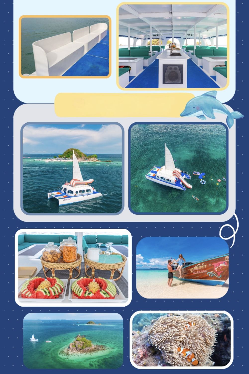 14:30 抵达蜜月岛,普吉蜜月岛是泰国私人岛屿,不对外开放登岛,因游客较少,周边自然生态环境保护得好。海底珊瑚丰富,鱼类品种繁多,周边常能观测到海豚出没,深受浮潜和深潜爱好者青睐。游客可享受浮潜、观赏海景、体验桨板、水上魔毯等水上项目