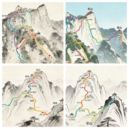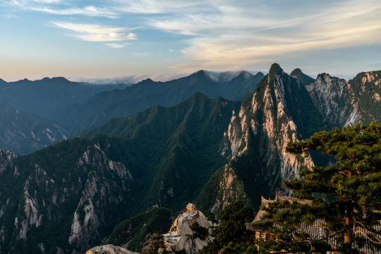 ▲ 华山五峰分别为东峰、西峰、南峰、北峰和中峰,其中西峰海拔2154米为*高峰。每座山峰都拥有独特的景致和登山步道,尤以西峰的"华山长空栈道"*为著名,被誉为中国*险峻的山巅之一。游客在此可俯瞰整座山脉的壮丽全景,云雾缭绕的峰峦与层叠山脊共同构成令人叹为观止的奇景。