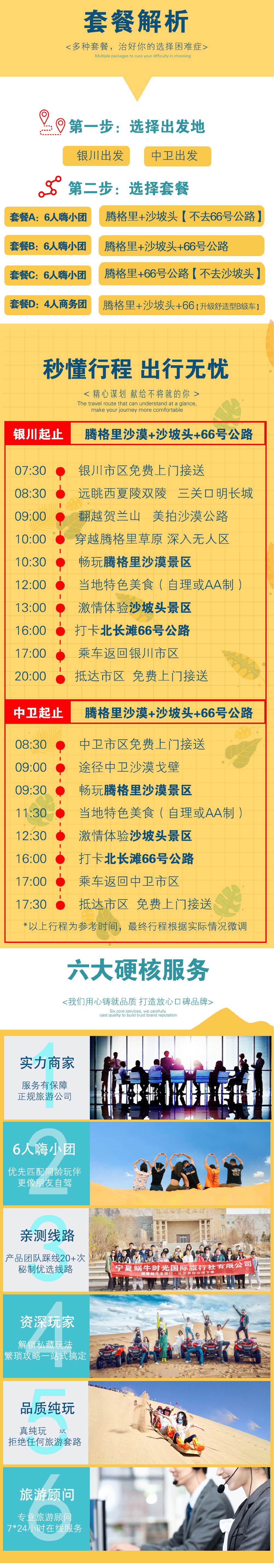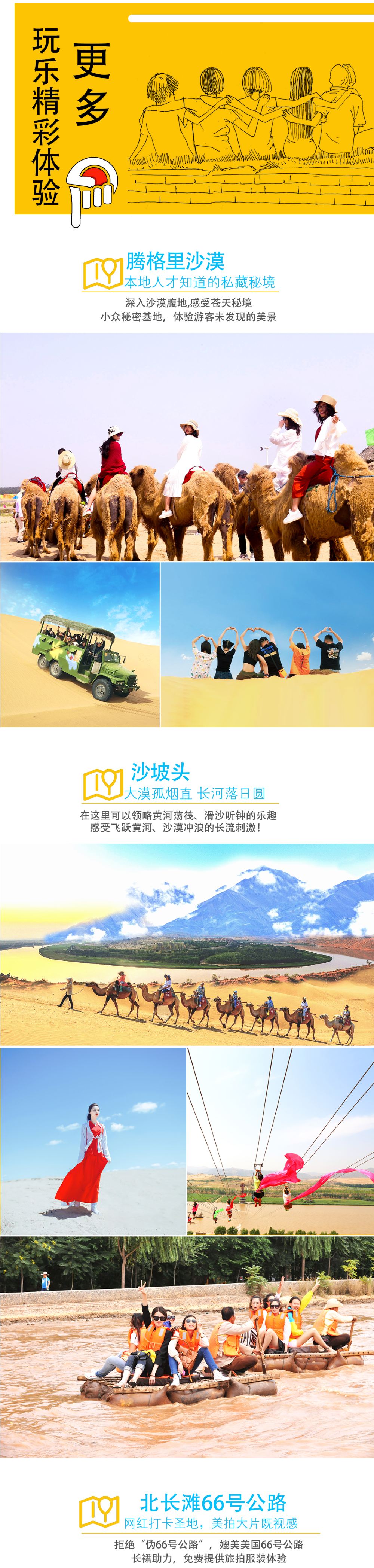 2、退费说明:因为66号公路无需门票,故因为不可抗力因素导致66号公路无法游览,无退费,如果不愿意此方案的游客宝宝,可直接选择我们的套餐A【腾格里沙漠+沙坡头/不去66号公路】,下单即默认已知晓此方案,行程当天不在解惑,望理解~~~