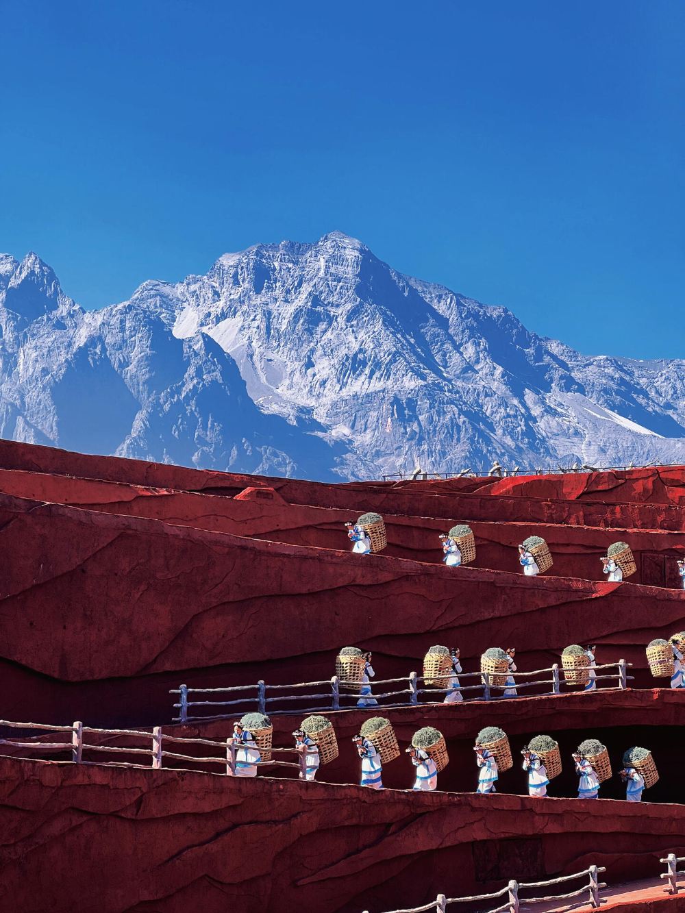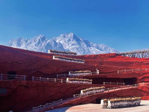 ▲ 《印象丽江》是继《印象刘三姐》之后推出了又一部大型实景演出,总投资达2.5亿元,上篇为“雪山印象”,下篇为“古城印象”由导演张艺谋携手王潮歌、樊跃共同执导,历时1年多时间,经上百次修改完成 。 原生态大型实景演出《印象丽江》演出剧场位于海拔3050米世上比较高的实景演出场地——玉龙雪山景区甘海子,是一部在白天进行的实景演出。人员由《印象刘三姐》的原班人马组成《印象雪山》以雪山为背景,汲天地之灵气,取自然之大成,以民俗文化为载体,用大手笔的写意,在海拔3100米的世界!