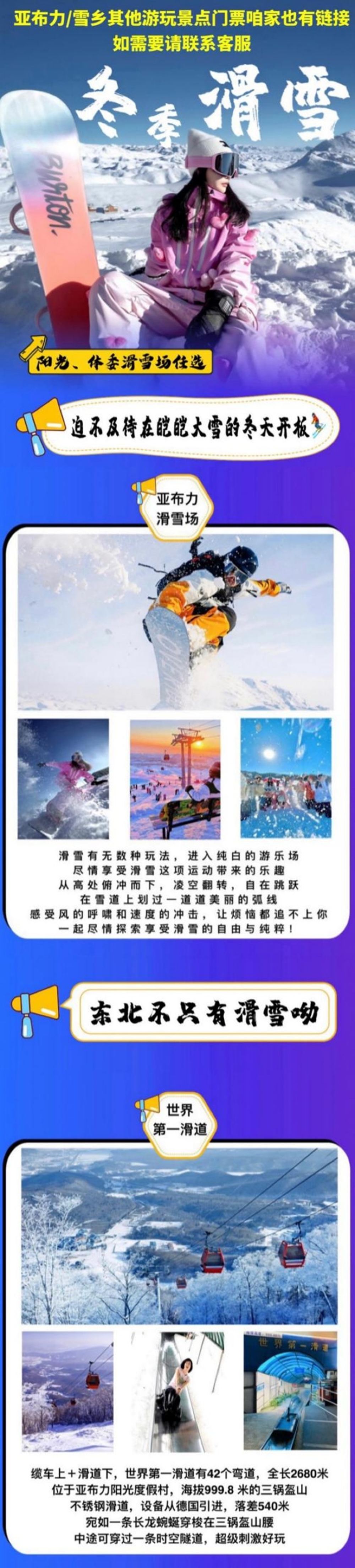 亚布力世界第一滑道门票+赠送驯鹿园【上门免费接送:亚布力南站/亚布力旅游度假区内接送。】