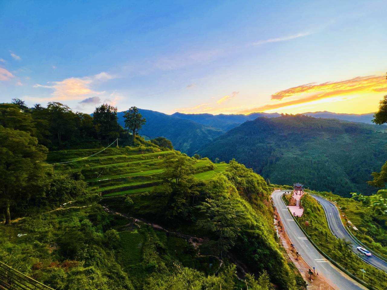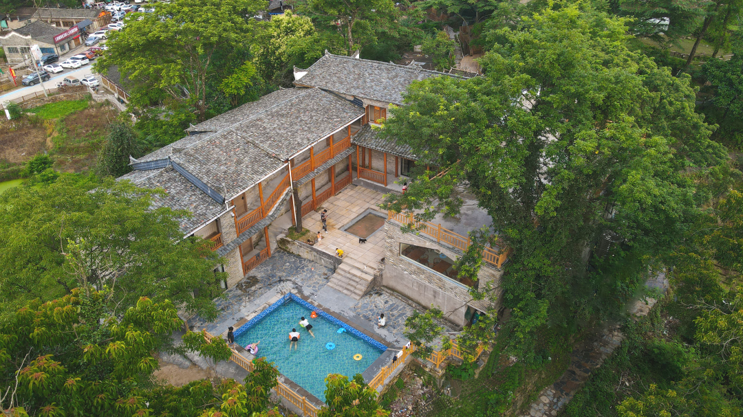坐在阳台上,东可观日出、看梯田;南可一览错落有致的千年古寨错落有致的房屋全景;北面是大峡谷,眺眼远望,让人心旷神怡。西面千年古树挺立,见证了人民公社的历史悠久