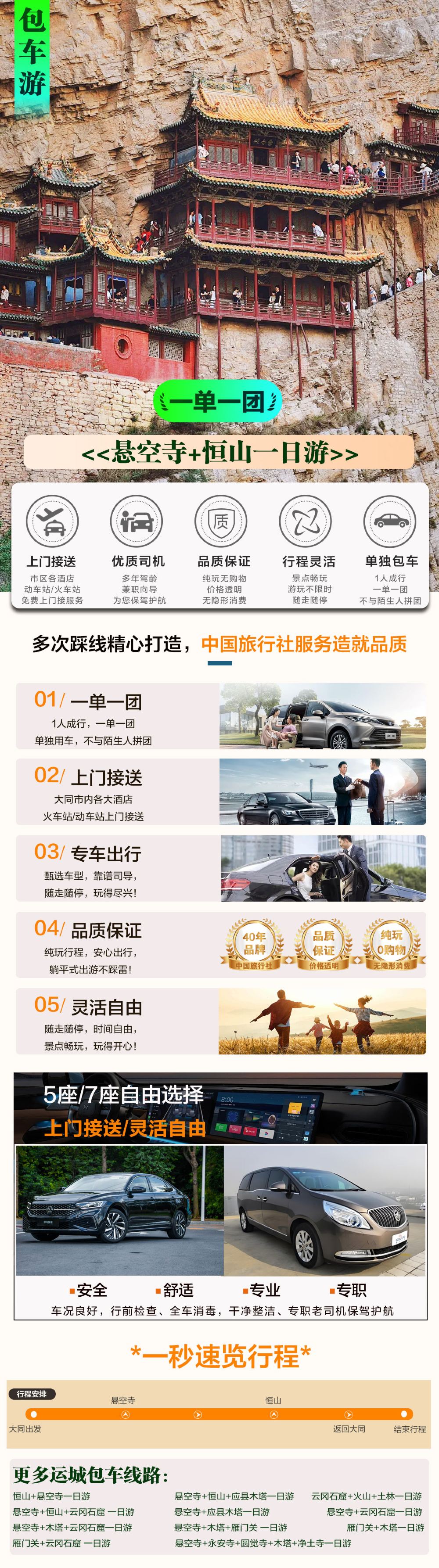 【包车游】悬空寺+恒山一日游|景点游玩不限时【可选车型】【一单一团不将就,不与陌生人拼团,自由随心。】