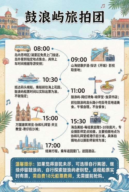 鼓浪屿1日游【不推自费】16人团+往返船票+旅拍/日光岩可选【纯玩无自费:16人精品小团,全程0隐形消费,深度游玩】