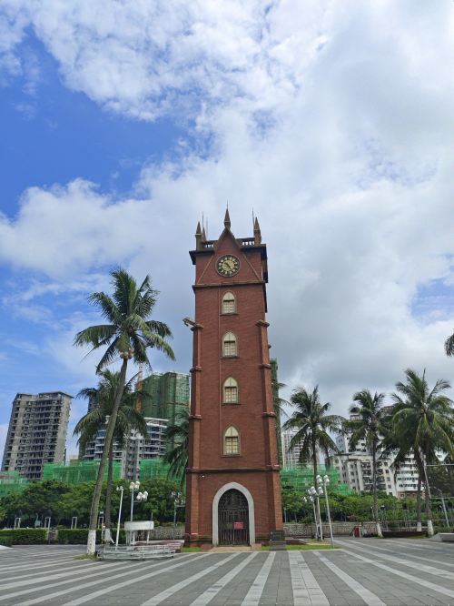 ▲ 海口钟楼始建于1928年,位于长堤路与新华北路交汇处,是海口地标性历史建筑。1987年原址重建,高27.3米,四面设罗马数字大钟。它见证百年骑楼兴衰、南洋商贸繁盛与城市变迁,现为省级文保单位,每整点报时,声传老街,象征海口开放包容的城市精神。