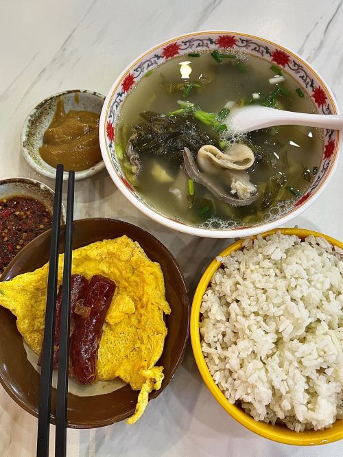 ▲ 辣汤饭是源于海口骑楼老街的传统市井小吃,原为码头工人、渔民的快捷午餐。以猪杂骨熬制汤底,加入海南胡椒粉提鲜暖胃,配白米饭与腊肠、煎蛋。汤头辛香浓郁却不辣喉,兼具饱腹与驱湿功效,现已成为代表海口老街烟火气的标志性平民美食。