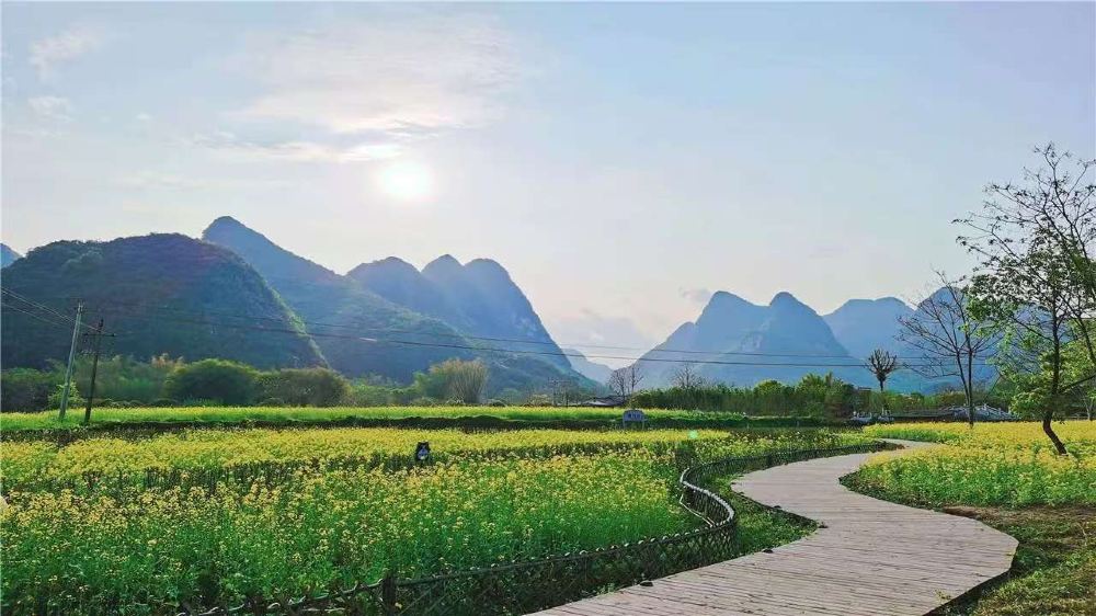 自行车碾过彩色车道,喀斯特峰林像巨兽般蹲在路边,油菜花田突然撞进视野。阿婆的竹筐里堆着冒热气的烤红薯,甜香混着泥土味。
