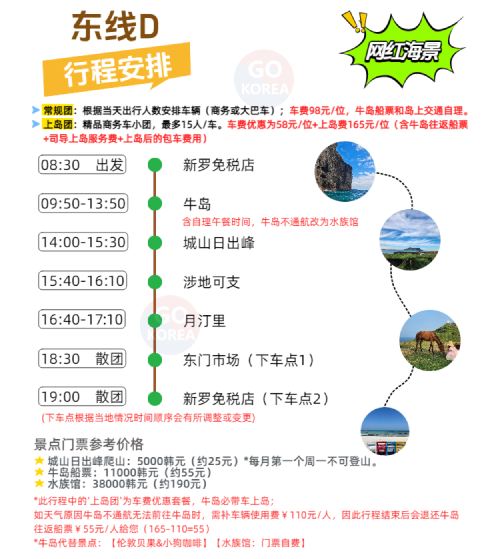 济州岛一日游D线牛岛一日游|5~15人精品团或44人大巴可选【纯玩无购,中文服务!带你一天打卡济州岛东部网红景点![牛岛+城山日出峰+涉地可支+月汀里]】