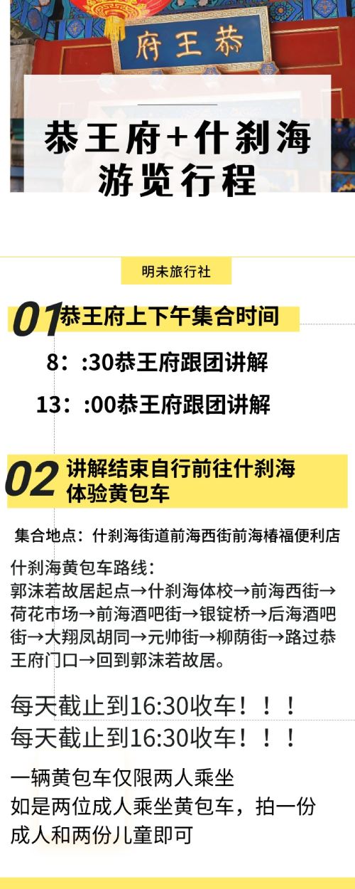 恭王府+什刹海一日游(可体验黄包车)【黄包车加持:解锁胡同的正确姿势,省力又出片】