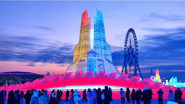 ▲ 在五光十色的冰雪大世界中,巨型冰雕与璀璨灯光交相辉映,营造出如梦似幻的冬日奇观,仿佛置身于冰雪王国的奇妙之境。