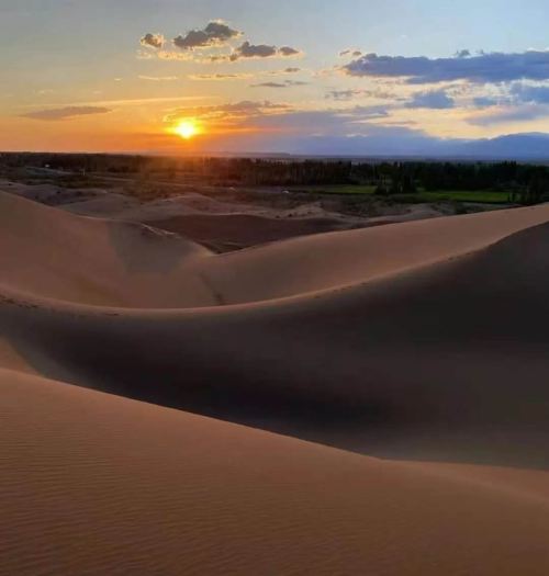▲ 这里给你全面介绍库木塔格沙漠(维吾尔语意为沙山),常指新疆吐鲁番市鄯善县城南的AAAA级景区段,同时也是横跨新甘的大型沙漠,是世界罕见的城沙共生奇观 。