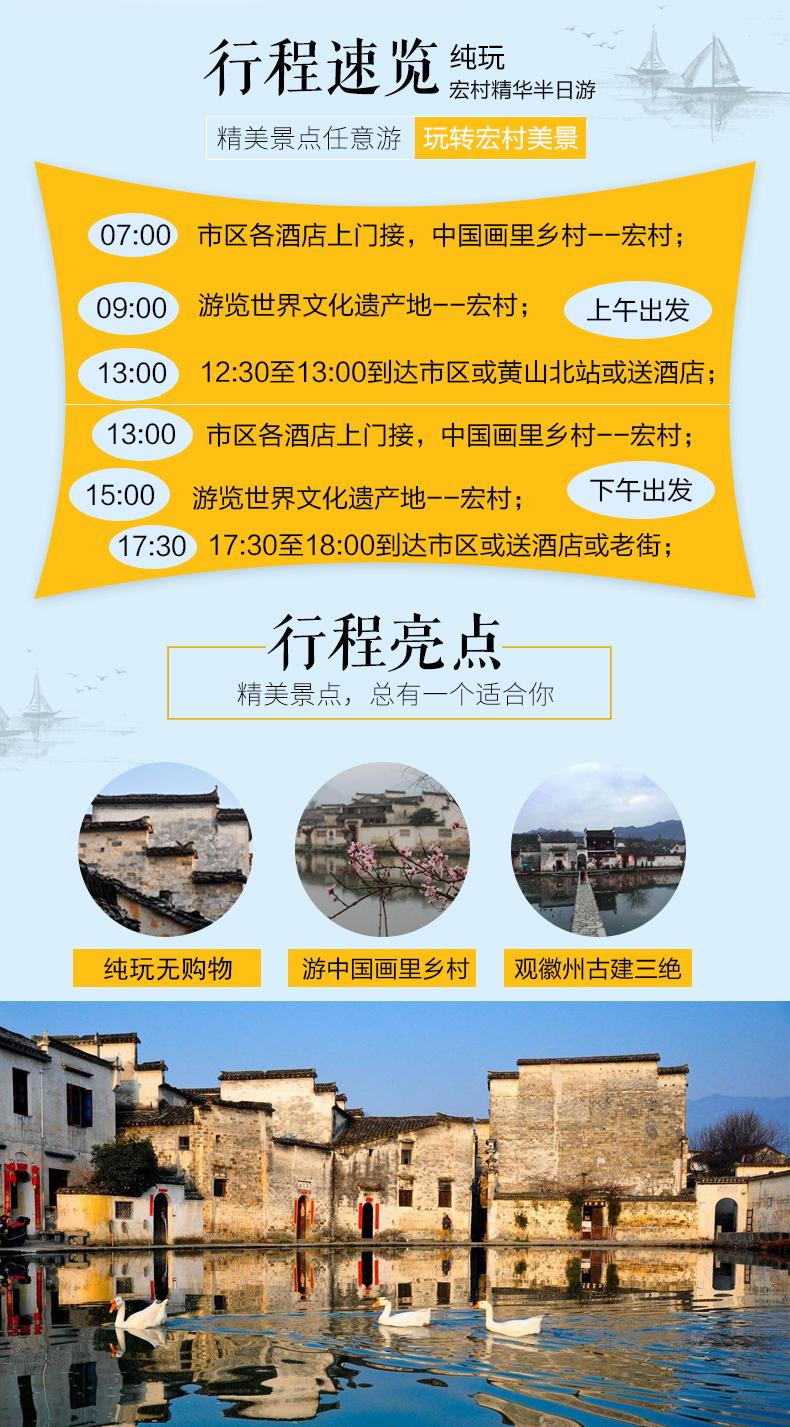 宏村精品半日游:上午班/下午班任选+上门接送+游画里乡村+纯玩品质团+导游陪同