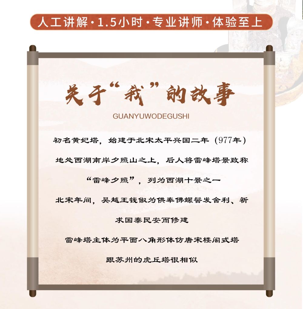 雷峰塔【1.5小时精致讲解丨登雷峰塔观西湖全景丨不含门票】【专业持证讲解,把历史作为故事讲解给您听。】