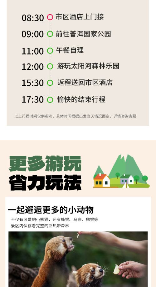普洱太阳河森林公园一日游【6人小团+亲近大自然+纯玩无购物】【与小熊猫亲密接触,原始森林公园与网红小熊猫亲密拍照;】