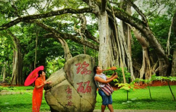 ▲ .独树成林:位于姐勒乡芒令寨,是树龄数百年的自然奇观,树冠覆盖面积达4亩,气根垂落如帘。
