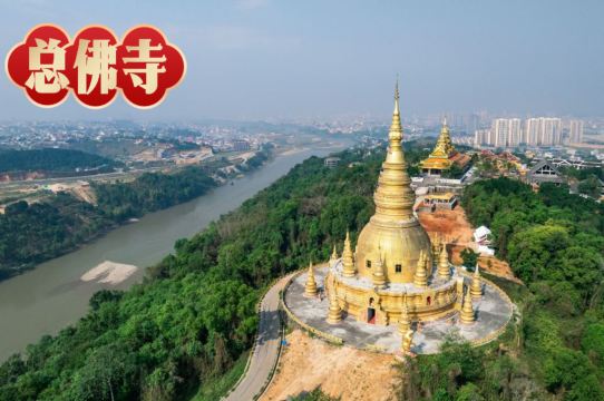 ▲ .总佛寺:坐落于山顶,具有东南亚风格的金色佛塔,与缅甸木姐市隔江相望,是拍摄边境佛国风情的优选之地。