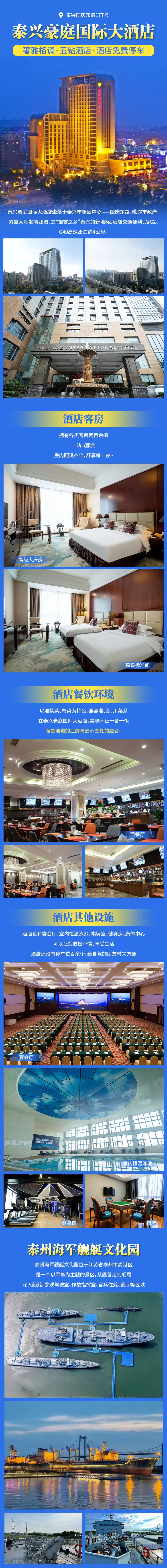 【酒店套餐】【五钻酒店】泰兴豪庭国际酒店2天1晚+双人泰州海军舰艇文化园门票+双早