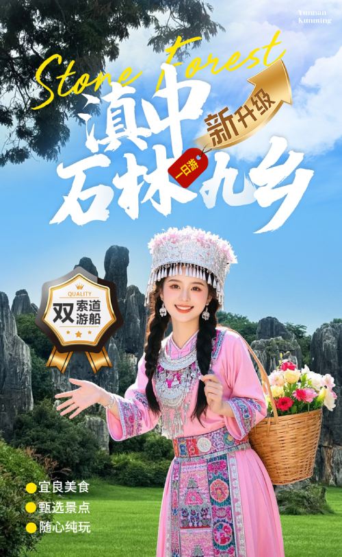 石林风景区+九乡一日游【精选导游+溶洞探险+含中餐】【[多套餐可选]性价比常规团&15人内小团,总有一款适合您!告别人多喧嚣的嘈杂】