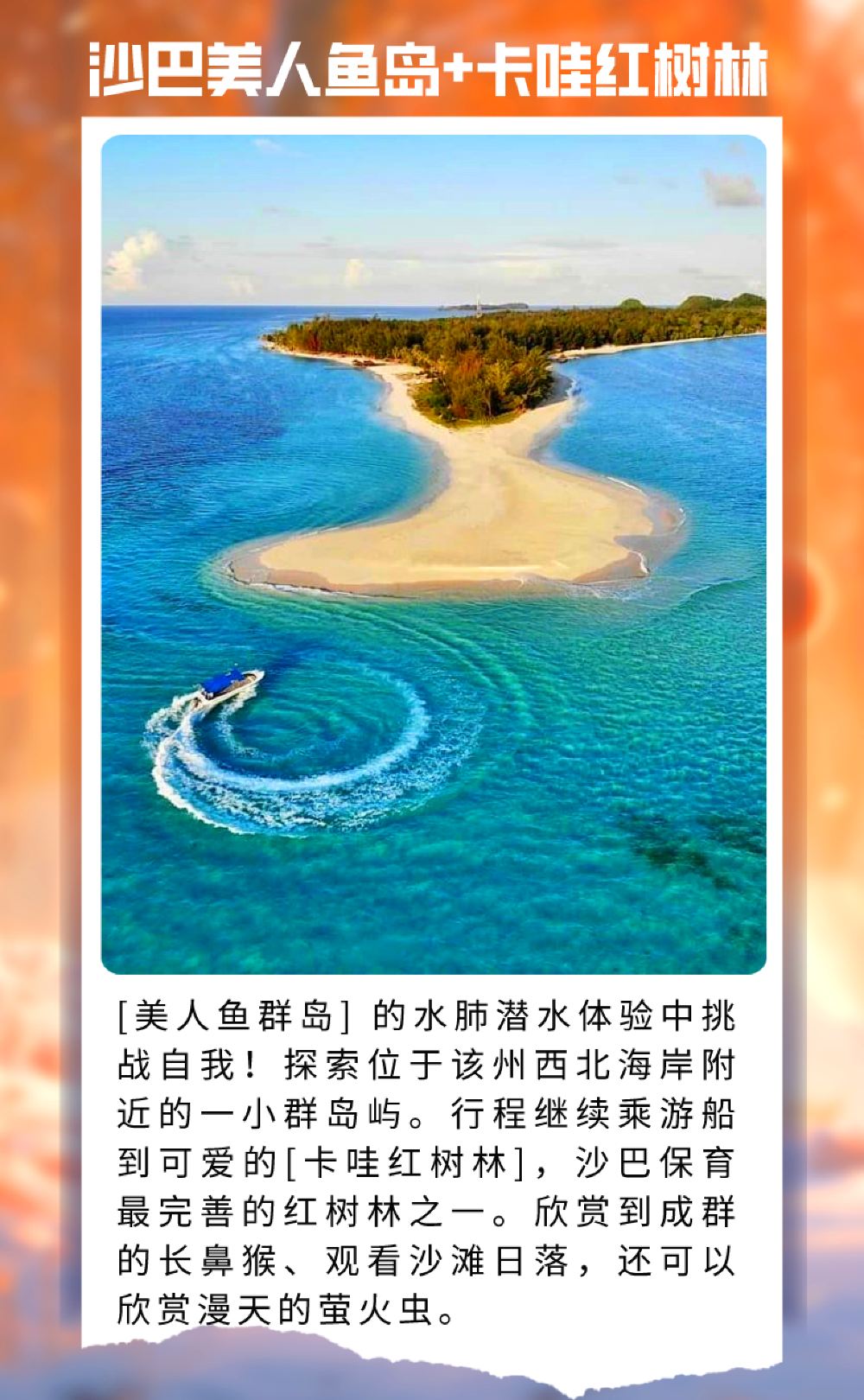 沙巴美人鱼岛+红树林【长鼻猴+萤火虫+浮潜或深潜】【沙巴西海岸感受清澈海水和纯净的海滩】
