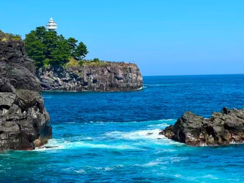 ▲ 【城崎海岸】 是位于日本静冈县伊东市的一处超美海岸线,以其火山岩形成的奇特地貌和宝石般的海水而闻名。这里是《非诚勿扰2》的取景地,也是很多人心中的小众宝藏地。