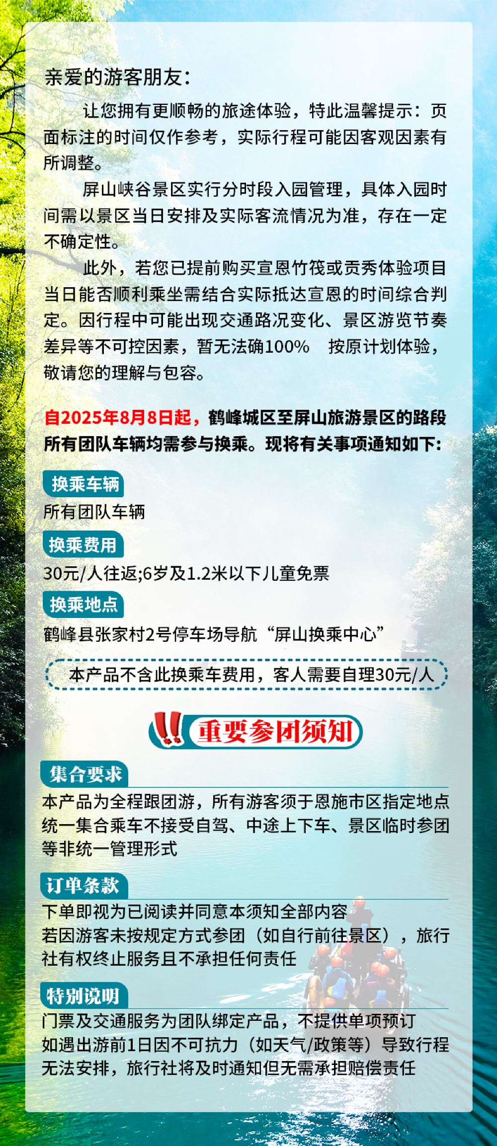 【品牌自营】恩施屏山峡谷一日游【含门票船票 市区接送丨纯玩】【[专注纯玩]湖北省4A旅行社,携程Trip战略合作伙伴奖,坚持20年只做恩施纯玩跟团游!】