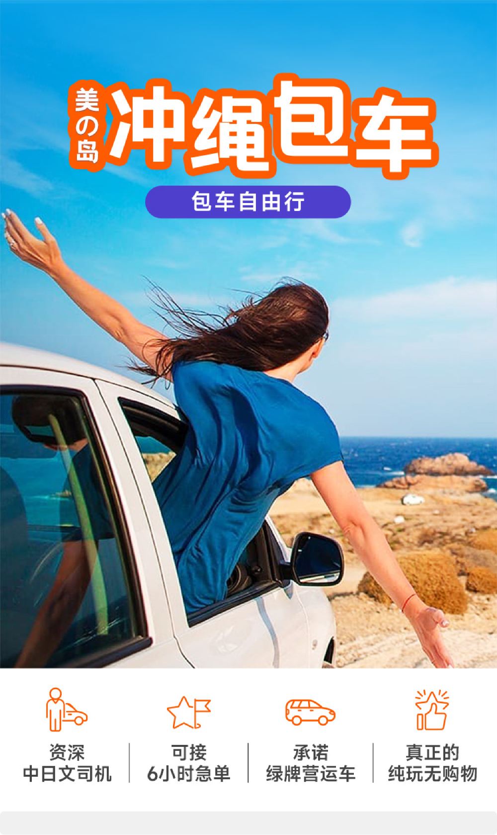 冲绳包车一日游丨南部丨中部丨北部包车游|日文/中文多车型可选【专业行程规划师规划线路,提供省时省力省心的旅游方式】