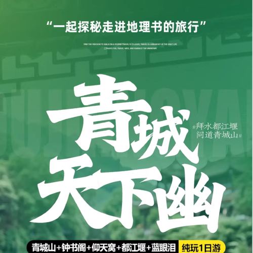2-8人精讲小团青城山+钟书阁+仰天窝+都江堰+蓝眼泪一日游·门票全含+都江堰景区讲解