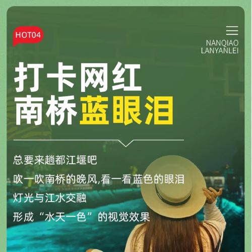 约14:30:我们特地推出司导带您从都江堰景区秦堰楼进入,俯瞰都江堰景区全貌,不走回头路,全程下坡路为主,老人小朋友轻松游览,步行轻松;秦堰楼进为您节省40元扶梯费,市场大巴团90%都是从都江堰景区玉垒阁进,自费扶梯费40元/人,大团是必须,请仔细甄别对比!