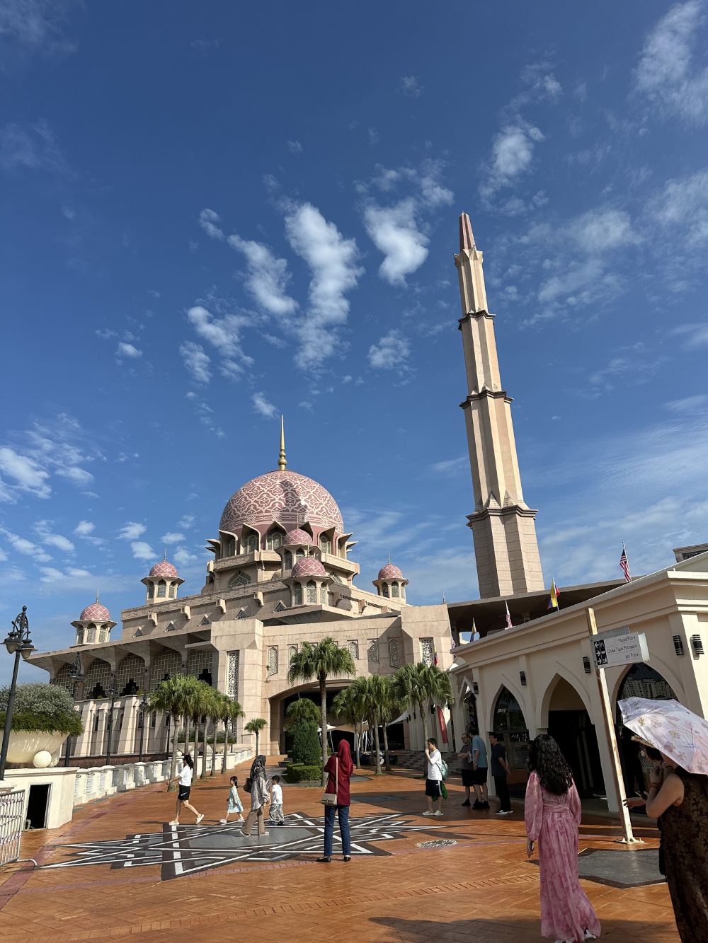 ▲ 布特拉清真寺,俗称玫瑰清真寺、粉红清真寺、水上清真寺,是马来西亚行政首都布城的一所清真寺,位于布城湖旁。毗邻布城首相署和布特拉广场。 该清真寺于1997年动工兴建,并在两年后落成。该工程总耗资2亿5千万马币。清真寺的外墙为粉红色,设有九个圆顶和一座高116米的宣礼塔,可容纳15,000人聚礼。