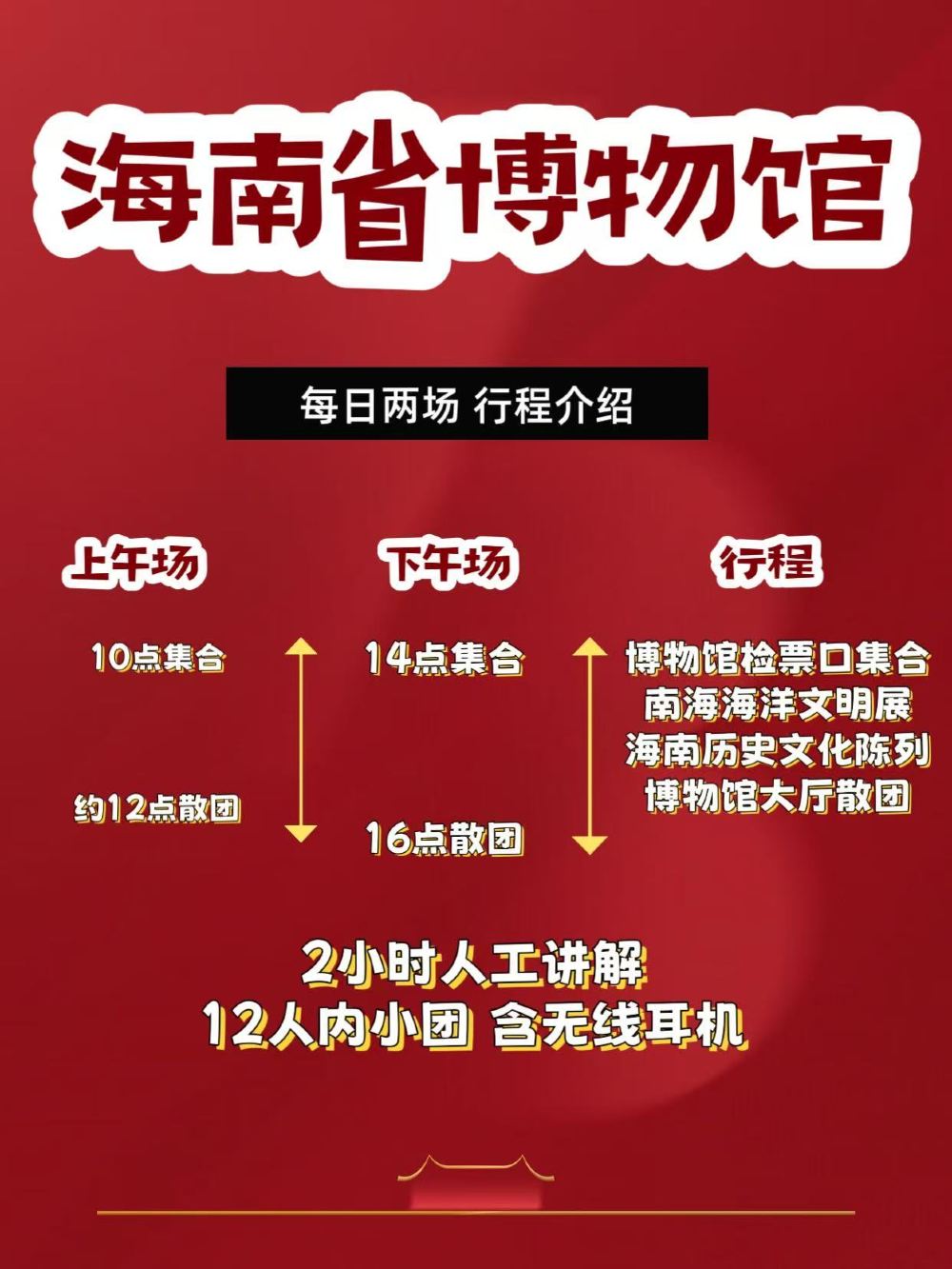 1.海南省博物馆每周一闭馆,周二至周天9:00-17:00可入内参观,16:30停止入馆。