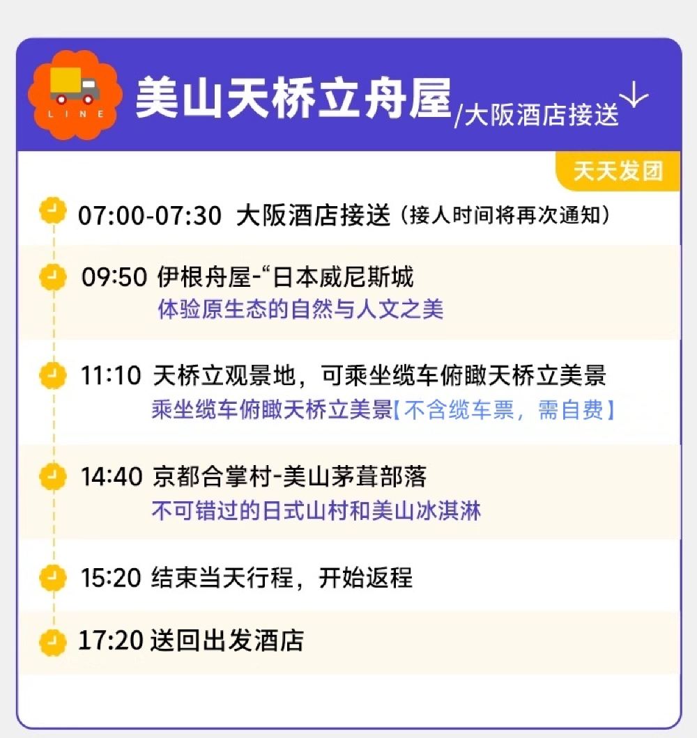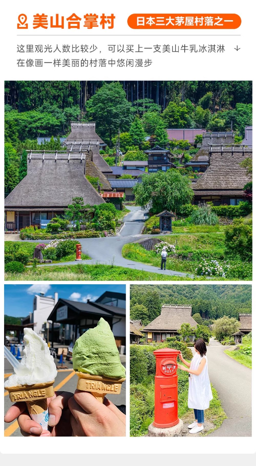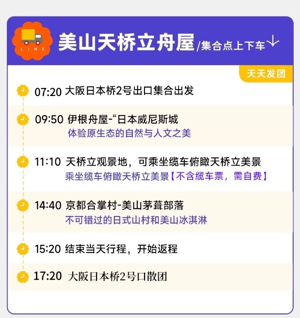 ▲ 伊根舟屋:一个被誉为日本“威尼斯”的小渔村,沿海而建的舟屋错落有致,仿佛漂浮在海面上,独特的水上生活方式,形成了与世隔绝的治愈感。这里没有熙熙攘攘的游客,只有海风、渔船、和温暖的人情味,仿佛走进了一部宫崎骏的电影。 天桥立:日本三景之一,在长约3.6公里的沙滩上,有着8,000多棵松树形成的林荫,坐缆车抵达山上后,会看到人们弯下腰从跨下倒着看前方的天桥立沙洲。 美山茅草屋:日本三大茅草屋集落之一,260年历史的合掌造村落,随手拍都是《龙猫》场景,在这里,可以欣赏到传统的建筑风格