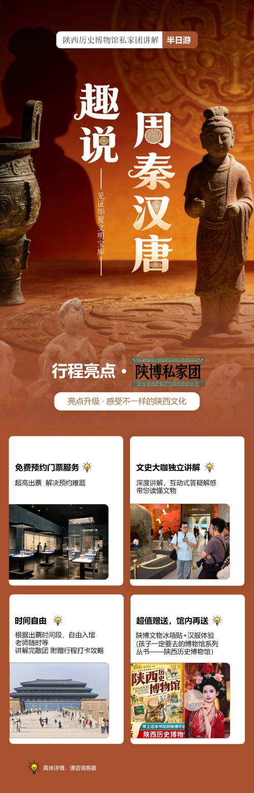 7 赠送说明:每团馆内赠送的博物馆图书为一团一册 馆外赠送的冰箱贴和汉服体验,按需要报备 一人至多一份赠送 不夜城汉服装造+陕历博文创冰箱贴 (赠送汉服体验+基础装造 按照实际下单人数赠送 需提前一天预约 不含睫毛 不含拍照 如到店后需要升级装造 费用自理 不使用不退费 望知悉)