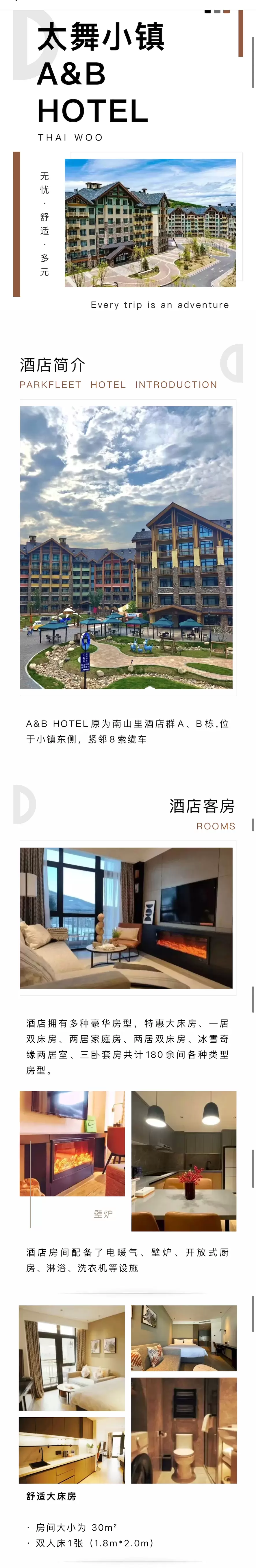 【滑进滑出】太舞小镇A&B HOTEL1/2晚+双人太舞滑雪小镇门票+双早 可选双人温泉
