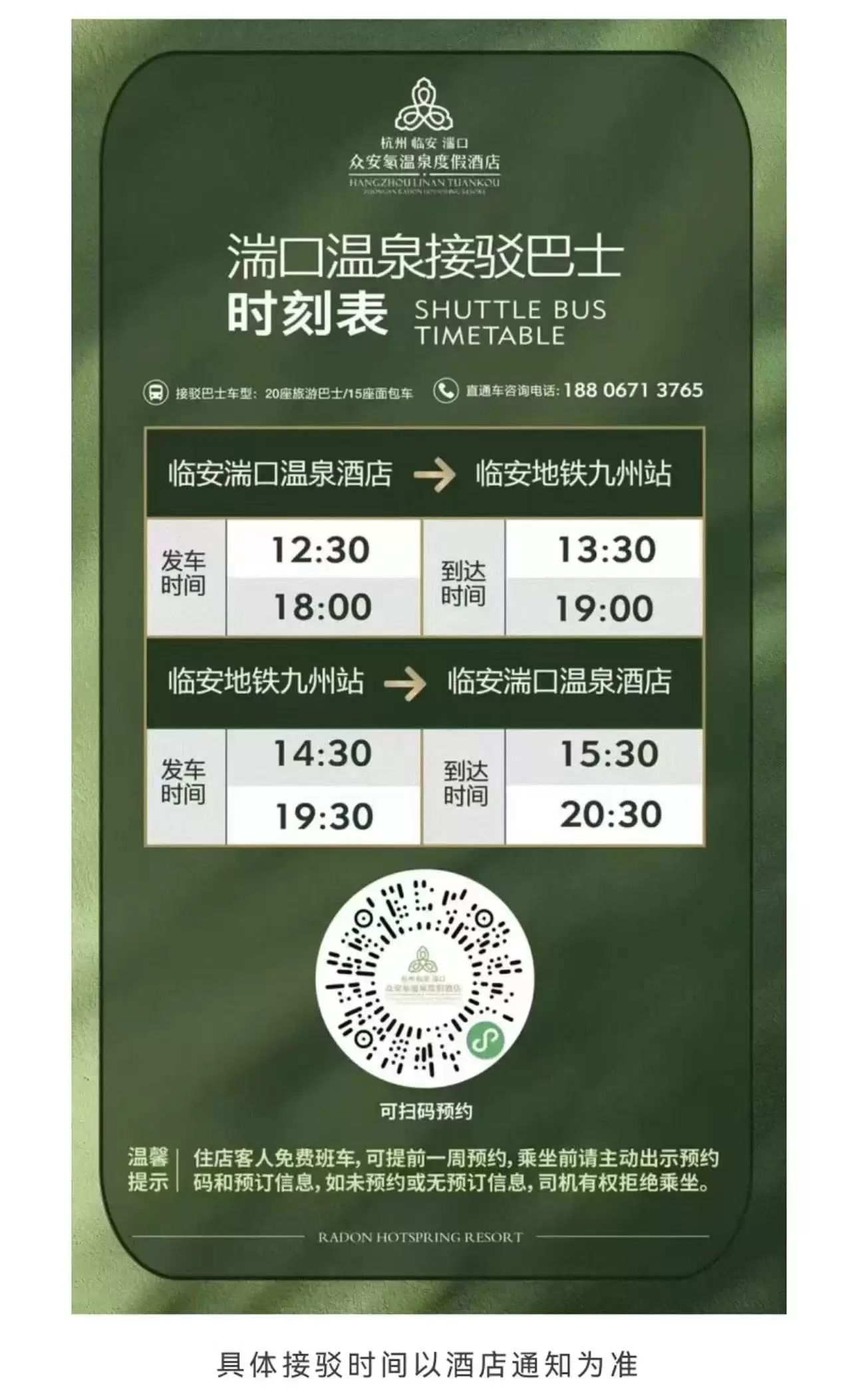 【国庆特惠】官方酒店★杭州临安湍口众安氡温泉度假酒店★冷泉畅泡+赠水乐园+自助早餐和晚餐+多重礼赠