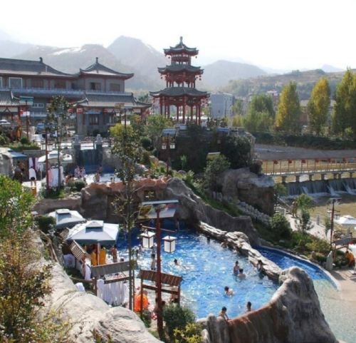 ▲ 温泉位于西安大雁塔以南38公里的东汤峪—蓝田汤峪,汤峪温泉水温58C,水质含几十种对人体有益的矿物质,全国各地旅客慕名前来洗浴、治疗,千百万名患者因洗浴弃疾健归,被誉为“天下第一泉”。温泉水使这里成为吸引城郊老年人来这里休闲养老的理想之地。这里青山环抱,谷幽林秀,湖光倒映,草深鱼跃,有可以提供理想的洗浴、开会、学习、度假、休闲的场所;这里楼房林立,环境优美,使得众多游人前来汤峪旅游观光。