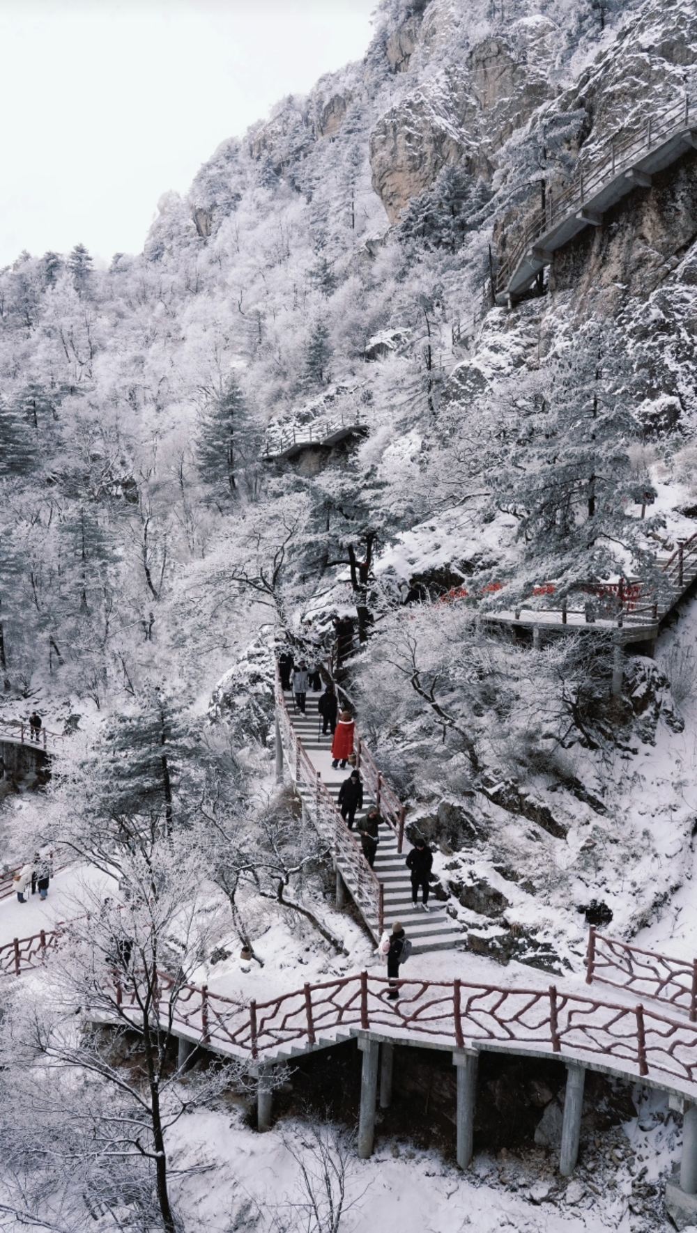 ▲ 雪后的老君山银装素裹覆峰林,琼枝玉砌间宛若水墨仙山,意境超然!